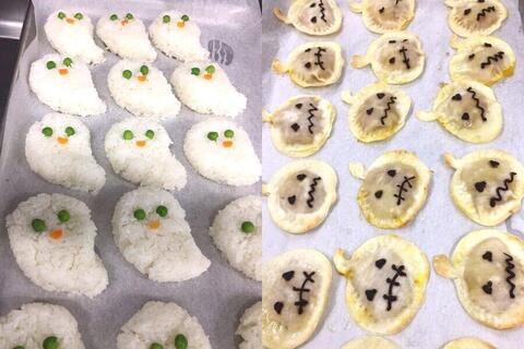 献立はハロウィン特製ハヤシライスとスパゲティーサラダ、フルーツです。